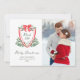 Den här chicen har kort för stil helgdag i vintage en färglös, viskös juldesign. En ljusröd vapensköld med trendigets röda båge omges av botaniskt löv av grönt med vattenfärg, och det moderna handskrivna manuset säger "Noël" och "God jul". Lägg till ditt favoritfoto.