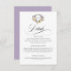 Det här trendig elegant bröllop-detaljkortet har en monogramvapensköld med lavender och blommigt av citron. Bröllop är personlig i elegant-typografi. Kortets baksida är en solid lavender.