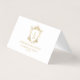 Placeringskort är viktiga för din speciella händelse. Den här bröllop-utformningen har en vapensköld för blommigt i vintage med anpassningsbar initialer och ett utrymme för ett bordsnummer och en persons guld.