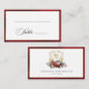 Trötthet och elegant, men ändå ett helgdag-temat bröllop-platskort med klassisk handdragen vapensköld för guld-blommigt, accentuerad med en färgspray av röda och vita julblommor och grindar. Den här anpassningsbarnas formella mall innehåller redigerbar fält för gästtextbilder i namn och bordsnummer samt för textbilder i anpassningsbar och texturerat gräns i guld. Utsidan av gräns har en opulent, ruby red velvet struktur.