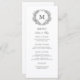 Svartvit Blommigt Leafy Vapensköld Monogram Bröllop Menu. Skapa perfektens mottagningsinställning! med den här enkla, elegant, rena tidslinjen svart och vit 4 tum x 9 tum bröllop-meny! Enkelt, elegant, bara perfekt. Det har en hand plockade-leafy blommigt-krans som omger ett serif bröllop monogram. Det är personlig i elegantens typografi och accentuerat med klassisk kalligrafi.