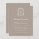 Den här vintage-inspirerade bröllopsinbjudan innehåller ett par vitt initialer i ett öppet serif-teckensnitt ovanför och under en skiljelinje och omges av en botanisk vapensköld på en taupbakgrund. På baksidan finns utrymme för information om bröllop på en solid taupbakgrund, tillsammans med en QR-kodgäst som kan söka på webbplatsen och OSAN.