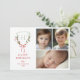 Klassisk mjuk grönt med vattenfärg och röd vapensköld vid jul med vinter-grön, grå och rå båge - anpassade med ditt monogram, 3 foton och önskemål vid jul.