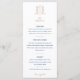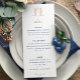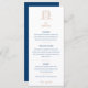 Djup mörk blått och ro guld färg på vit bröllop-middagsmeny. Redigera den här 3-kursmenyn med din egen måltidsalternativ. Formell men modern hand plockade-monogramvapensköld med insvingade bär och löv och utfälld med krona-hjärtkonstruktion. © Original hand teckning och design av Sarah Trett för www.mylittleedenweddings.com endast på zazzle.