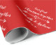 Vår 1st för jul som beställnings- röda helgdag tillsammans slår in papper. Idé för Personalizable gåvasjal med anpassningsbarnamn och det romantiska meddelandet. Röda bakgrundsfärger för anpassade och personligsäsonhälsningar. Eleganten borstar skrivar den handlettering mallen med teckningen för vintagehjärtapilen. Den gulliga kärlekdesignen för nygift person, ny giftapar, bruden och brudgummen, pojkvännen och flickvännen, maken och frun som är förlovade kopplar ihop Etc. firar din första julafton med denna nätt giftwrap. Tillgängligt i glansigt och matte fullföljande.