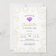 Fira din lilla gem med den här eleganten, en gemenskapad födelsedagsinbjudning med en mousserande faux-lila-juvel och guld-stil-gem-illustrationer. Den moderna layouten och lyxestetiken gör det till perfekt för en glamorös första födelsedag eller en milstolpe för firande. Anpassa texten med ditt barns namn, händelseinformation och OSA för att samordna med matchande leveranser från gemstone party.