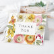 Ett ljust och glatt tackkort med vackra feminina vårblommor i gult, orange, rosa och vitt. Kortet är medvetet tomt på insidan så att du kan skriva eller ange ditt eget önskade tackmeddelande. Detta kort koordinerar med en vårblommig bröllops shower-samling och kan också användas för andra tillfällen.