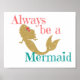 Rosa och sjöjungfru citat: "Var alltid en sjöjungfru." Guld glitter sjöjungfru silhuette med blomma i håret. Poster kan hängas på väggen som i eller i ram.