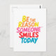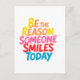 Gör någon till sin dag med det här trevliga och upplyftande vykortet som innehåller den inspirerande frasen "Var orsaken någon Smiles Today" i en levande, färglös skrift. Oavsett om du presenterar det för en vän eller använder det som en vardaglig påminnelse om att leda med vänlighet, ger den här designen ett budskap om uppmuntran, glädje och bra vibes.