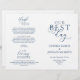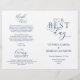 Det här är det vikbara programkortet för ceremonin i bröllop, i ett marinblått skript. (Vår bästa dag) Det är designat med rullans accenttecken som kan vara personlig med anpassningsbar/ personlig för brudens sida, ceremonidetaljer, minnesanteckningar och tack. ** Obs! Dessa pappra textviktsprogram anländer jämnt och kräver vikning för att samlas ihop.