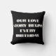 Vår berättelse om kärlek börjar varje födelsedag. kudde