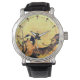VÅR BIRD,FLOWER TRÄD Guld Gult Brown Monogram Armbandsur