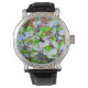 Nya blommar för körsbär under våren gör ansikte på den här söt klockan ljusare. Digital målning från ett foto.