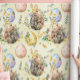 Tan Påskhare sitta bredvid ett vitt och blått blommigt med gult, rosa och blåa ägg med blommor på en ljusare vattenfärgsbakgrund i gult. Perfekt för Påsk gåvor eller Påsk födelsedagar. Cute för både familj och barn.