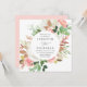 Bröllopbjudanden för blommigt i elegant med dina bröllop-uppgifter som omges av en blommigt ram av ro med rosa och tulpaner med lush grönt och kopparlöv. Blommigtens bröllopsinbjudningar går tillbaka till en lätt rosa bakgrund. Designad för samordning med vår samling i bröllop vid Blommigten Vår.