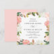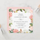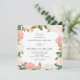 Bröllopbjudanden till blommigten i elegant med information om bröllop som är framtagen av rosa vattenfärgsro och tulpaner med lush grönt och kopparlöv. bröllopsinbjudningarna på fyrkantig blommigt går tillbaka till en lätt rosa bakgrund. Designad för samordning med vår samling i bröllop vid Blommigten Vår.