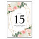 Snyggt-, blommigt bröllop-bordsnummer-kort med bordsnummer-, namn- och bröllop-datum omgivet av ett faux guld-folie geometriskt ram med rosa, vit vattenfärg ro-, vit vattenkraft- och lush-grönt och kopparlöv. De elegant bordsnumren är designade att samordna med vår samling i bröllop vid Blommigten Vår. Lägg till varje kort till bordsnumret i din kundvagn.