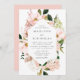 Elegant, bröllopsinbjudningar för vår blommigt med dina bröllop-detaljer som är ramade av vattenfärgsfärgade vattenramper för rosa, lush grönt löv och faux ro guld-folie accents. Anpassa de bröllopsinbjudningarna i blommigten genom att lägga till namn och bröllop. Inbjudan till vår bröllop går tillbaka till en solid bakgrund för rosa. Perfekt för vår och sommar-bröllop, trädgårdsbröllop osv.