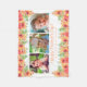 Den här söta filten Mors dag ger utrymme för tre bilder av hennes barn. Konstruktionen accentueras med korall-, rosa- och gult vattenfärgblommor på vit bakgrund. Anpassa till barnens namn.