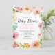 Gratulera till flicka med den här ömtåliga inbjudan till Vår blommor Baby Shower. Med mjuka blommigtar för rosa och miljövänlig elegant ger den här inbjudan en ny, feminin beröring till din speciella dag. Perfekt för trädgård party, brunchduschar eller firande med blommigt som tema. Den här designen kombinerar klassisk skönhet med modern charm. Inbjudan dina gäster att duscha din lilla blommar med kärlek! BBS241