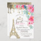 Vår blommor Eiffel Torn Guld Drips Sweet 16 Inbjudningar