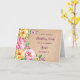 Söt och tankeväckande hälsningskort för din moster födelsedag med gult, lila och rosa vår blommor, rustiska vattenfärgen mönster och handskriven text från stil.