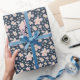 Ett vackert emballage pappert med blommor från vår rosa på mörk blått bakgrund. Jag hoppas att du gillar det och användor det för dina gåvor och papperskorgar! PS Tycker du om den här designen men behöver den i en annan kombination av färg? Jag är här för dig. Skicka mig ett meddelande och om cirka 48 timmar har du det tillgängligt för inköp. Skål, Elena.