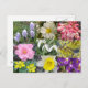 Kollage av vår blommor: krokus, snowdroppar, primrose, viburnum blommar, daffodil, vinterkakoniter, häxhasselns blommar