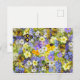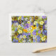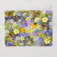 Ett söt, färglöst vykort för blommigt som innehåller en underbar bild av vår blommor av alla typer, inklusive daisy för gult, vita daisy samt blått, vitt och lila blommor.