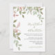 Inbjudan till Rosa på vattenfärgen i vår blommor bröllop. Den här bröllopsinbjudan är designad med kluster av Löv med vattenfärg i mjuka skuggor av grönt och rosa på vit bakgrund. Texten innehåller: Groomens första Namn, Brides första Namn, Datum, Tid, Plats, Adress och mottagning som ska följa. Baksidan är vit bakgrund. Om du vill anpassa dig infogar du bara din händelseinformation i mallen och ersätter exempeltexten. OBS! Ett mottagningsdetaljkort är tillgängligt för att slutföra inbjudan. Se till att du har tillgång till hela samlingen för Rosa av vattenfärg i Vår blommor, för matchande kort och tillbehör.
