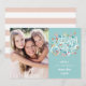 vår hälsning i Påsk med vårt söta och visuella fotokort, som innehåller ditt favoritfoto bredvid "glad påsk" i handskriven skrift med blommor och fjärilar. Lägg till namn under i vitt på en lätt turkobakgrund.