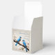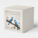 Anpassa en unik bröllopsförmånslåda för gäster med den här Bluebirdset. Med en favoritbox har du ett par bluebirds som vilar på ett gren av trä med vår blommor mot en papper texturerad bakgrund. Anpassa till namn i brudgummen och till bröllop-datumet. Ytterligare bröllop-förråd finns även med den här utformningen.