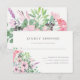 Det här responskortet för trendig och snyggt bröllop har en vattenfärgad bukett som består av vackra löv för rosa och lila blommor och grönt och som matchar modern typografi.