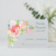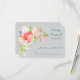 Svarskortet i söt bröllop har en blommigt i söt vår i färg av korall rosa, lavendel rosa, vit, blek i gult, guld och blått mellan gröntar i löv i det övre lämnat hörnet. Utformningen sträcker sig till den nedre lämnat, och bildar en söt gräns för anpassningsbarna. Texten är i grått och blå grönt vid högerna. Blommigtens vattenfärgsbild och text placeras på en ljusare mjuk grått-bakgrund som kompletterar ljusa färger i blommorna. Baksidan av inbjudan är samma grått färg. Svarskortet har matchande bröllopsinbjudningar och andra bröllop-produkter i vår butik.