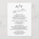 Detta eleganta och minimalistiska "The Details"-kort på spanska är det perfekta tillskottet till din bröllopssvit. Designat för att dela viktig information med dina gäster, såsom mottagning, klädkod, boende eller transportdetaljer, hjälper detta kort att hålla allt tydligt och organiserat. Dess rena design och raffinerade typografi gör det till ett vackert och praktiskt komplement till en modern fest.