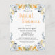 En elegant boho blomsterbukett med accenter av persika och blå med botaniska blad. Glad och lättsam; perfekt för en utomhusinspirerad bröllopsfest brunch.