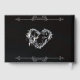 Denna design har en svart bakgrund med rullande kanter, ett diskret silverhjärta och typsnitt i elegant font. Utrymme för att placera parets namn på framsidan och namn och datum på ryggen. Finns även med olika bakgrundsfärger för att matcha er vigselfärger. Designad för att samordna med "Romantiska rullande hjärtan och kalligrafi" brölloppskollektion. För att ändra detaljer, klicka på «Personalisera». För att flytta texten eller ändra textstorlek, teckensnitt eller färg klickar du på «Klicka för att anpassa ytterligare»