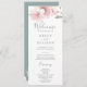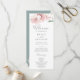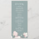 Bröllopsprogrammet för blommarna av körsbär i vår är perfekt för ett modernt bröllop. Utformningen av den orientaliska blommigten har en rosa av körsbärsfärgen träd gren och grönt löv med en blommar japansk elegant. Ta med namn i bruden och trimmen, datum och plats för bröllop, tack, serviceordning, brudens sida och ett minnesmärke "i kärleksfullt minne" som tillval.