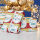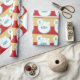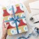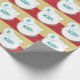 Denna julgåva som slår in papper särdragvit, cirklar med en moderiktig krickavattenfärggräns och en röd och guld- bakgrund för en mörk -. Beställnings- text läser: VAR GLAD!