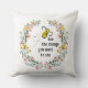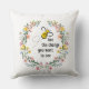 Vacker dekorativ kudde med humla och vilda blommor med inspirerande budskap: "Be den förändring du vill se" med olika storlekar och material tillgängliga.