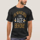 Den här svarta t-shirt-skjortan har en humoristisk textdesign i orange och vitt som lyder "JAG HAR ALDRIG VARIT DEN HÄR ÅLDERN FÖRE". "DETTA" i ord är centrerat över "ÅLDER", som kompletteras av dekorativt inslag, som skapar en lätt födelsedag eller åldersrelaterad påstående.