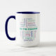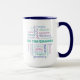 En färgstark molndesign i ord mugg med texten "Be förändringen" i centrum, omgiven av ord som fred, kärlek, vänlighet, medkänsla, integritet, ärlighet och generositet, som återspeglar positiva egenskaper och aspekter som världen skulle kunna använda mycket mer av.