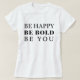 T-shirt har ett motiverat budskap om "Be Lycklig BE Be Bold Be You" skrivet i fet brev.