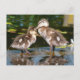 Ett par fuzzy baby-ankungsmunkavlar ihop sina beslag i en grunda damm i tidigt vår. Färg Fotografi som tagits på en liten kommundammspark där människor komar att se ankor i Chilliwack, British Columbia