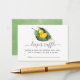 Könsneutrala raffningskort för babyduschdisken baby med handskriftsformat för elegant med en söt duckande blöjning i en blomstrande lilly i dalen.