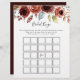 Möhippan Bingo-spel för blommigt i vår är perfekt för en enkel möhippa. Konstruktionen har vackra blommor med Rosa, , röda, blå och burguddiga, handmålade, tillsammans med grönt bladverk.