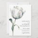 Elegant Modern Monogram Black White Blommigt Bröllbjudan. Detta minimala och elegant bröllop inbjudan har en enda vattenfärgsvit tulpanform med grönt och löv. Standardbakgrunden är vit, men den ser också förbluffande ut med svart bakgrund och vitt typsnitt. En förfinad blandning av klassiskt serif och delikat skript typsnitt ge är ett tidlöst och romantiskt intryck - perfekt för modern bröllop, enkel firande i land eller trädgårdsceremonier. Alla teckensnitt i färg kan anpassas. Baksidan har ett enkelt inledande monogram. Tillgänglig som en utskriven inbjudan eller en hämtningsbar digital fil för e-post eller utskrift lokalt.