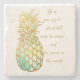Dessa unika underlägg presenterar en vattenfärgananas som målas med deppighet, gröntar, och fauxguld omkullkastar med formulera "är en ananas, det högväxt stativ, ha på sig en krona och är sött på insidan".