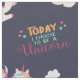 Ett sött och vackert mönster med vackra unicorns med regnbåge och svan, leende moln, färgstarka stjärnor, med den inspirerande texten "Idag väljer jag att vara en enhörning"