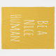 Gör dig glad med denna mysiga filt som innehåller den enkla men kraftfulla påminnelsen "Var en Nicemänniska". Den varma gyllene bakgrunden och den handskrivna typografin ge är en modern och upplyftande känsla, och skapar den som en perfekt för alla som är positiva för kärlek och snyggt i hemmet. Vare sig du håller på med soffan, lägger till en mysigt beröring i ditt sovrum eller tittar för ett inspirerande biet för att göra ditt utrymme ljusare, är den här mjuka och komforterande filten ett underbart val!
